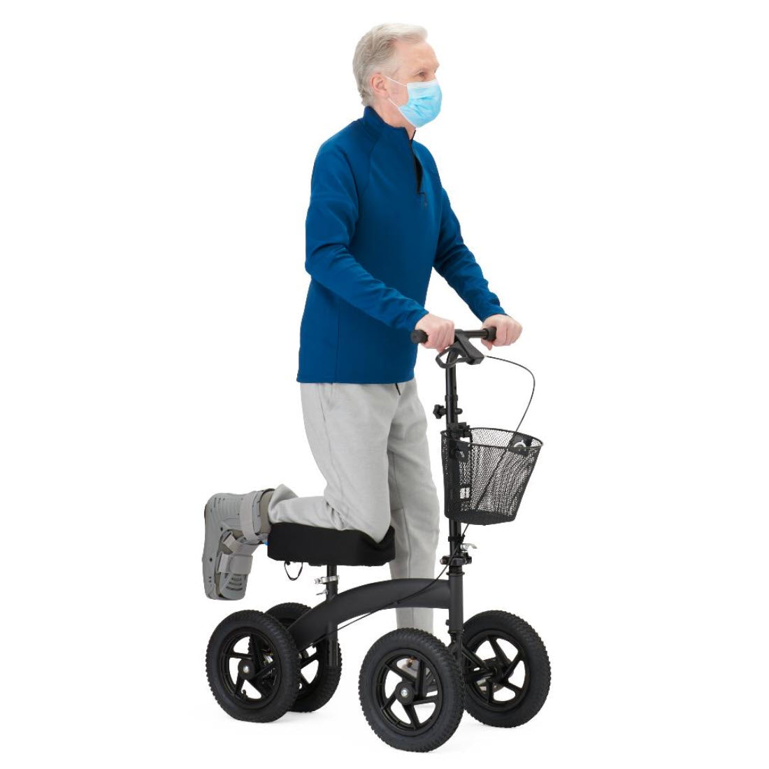 4 all-terrain wheels move easily over indoor carpet, hardwood and tile, as well as outdoor surfaces (wheels must be inflated prior to use)