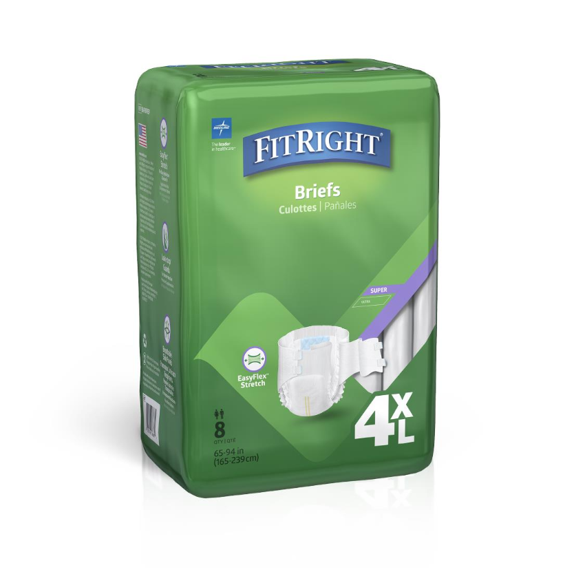 FitRight 4XL Cloth-Like Adult Incontinence Briefs for Waist Size 65"-94" - 8 Count