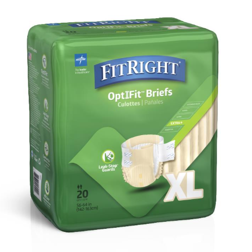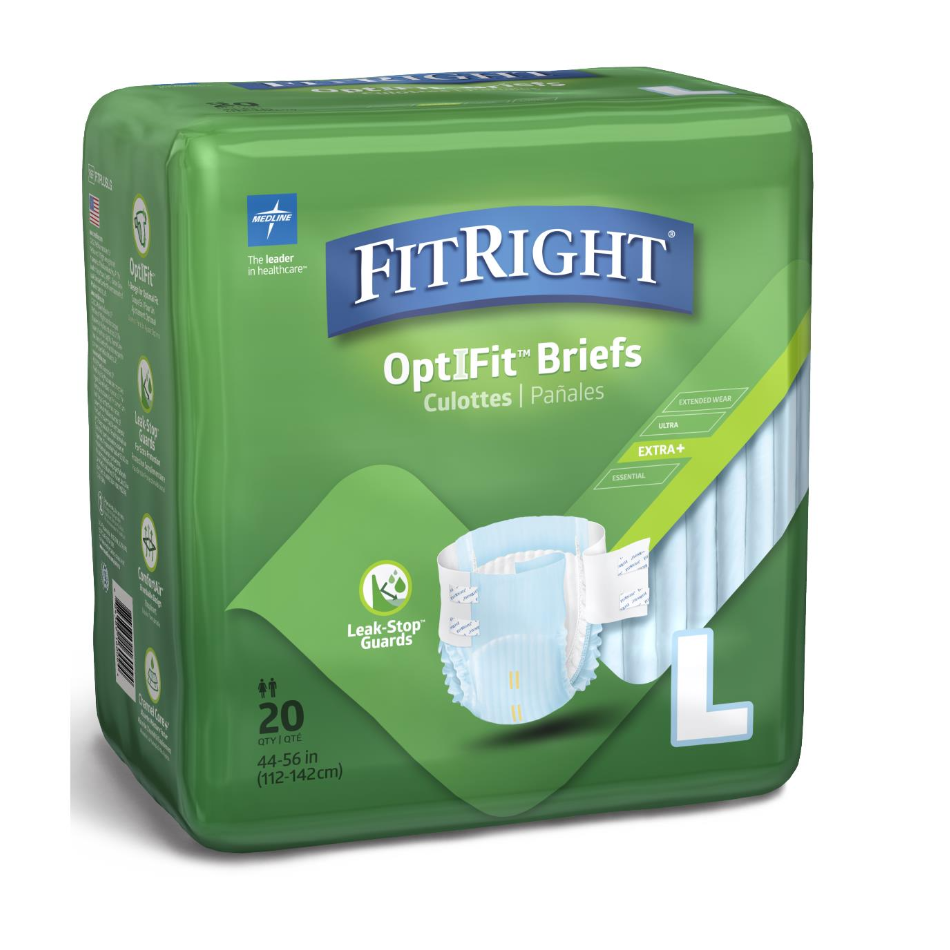 Hospital-quality disposable briefs have a 4D Core to wick away fluid for long-lasting dryness and odor protection