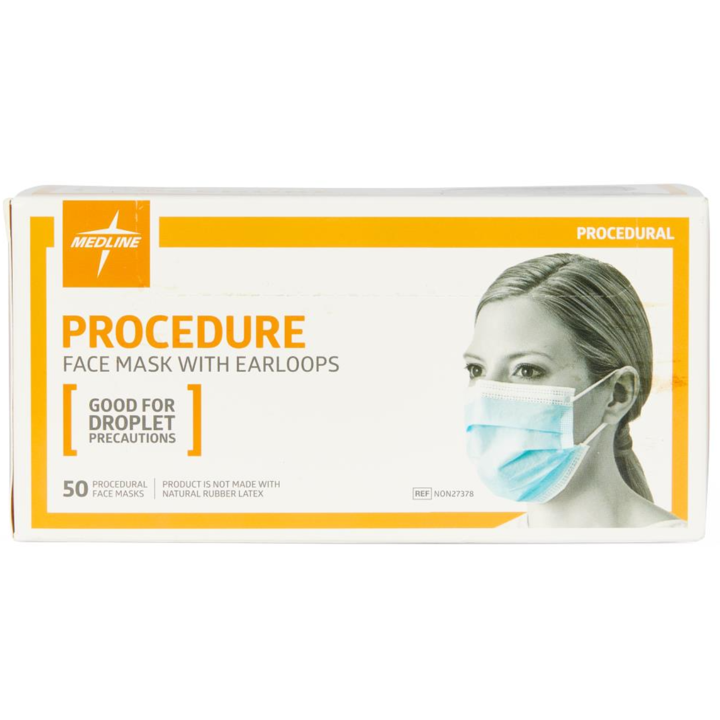 Medline ASTM Level 1 Procedure Face Mask with Ear Loops - 50 Count