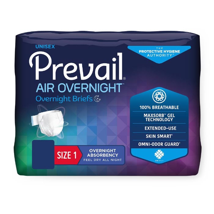 Prevail Air Overnight Briefs offer extended use protection, comfort and breathability for those dealing with heavy bladder or bowel leakage