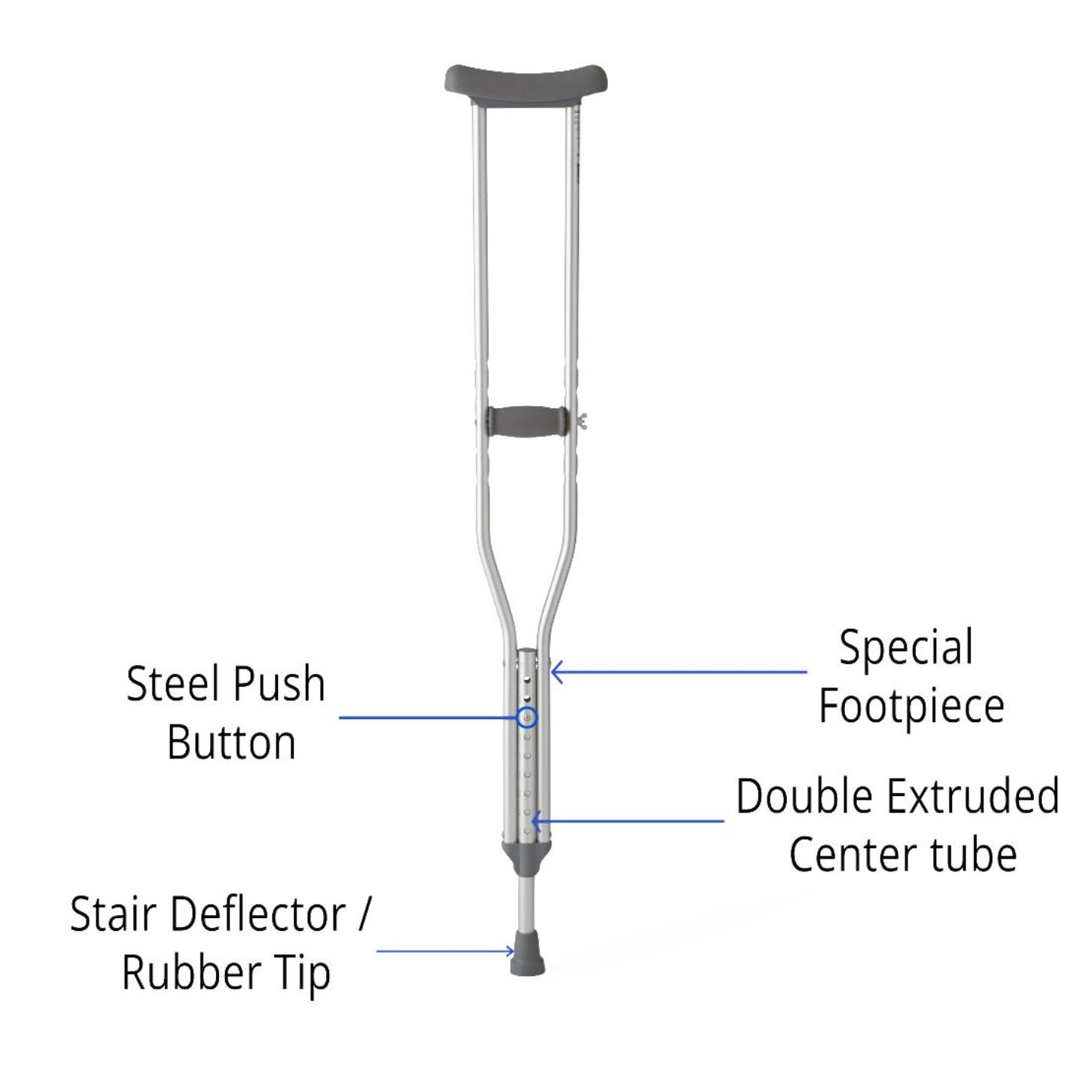 Standard crutches feature a double extruded center tube that provides load-bearing strength where it's needed the most