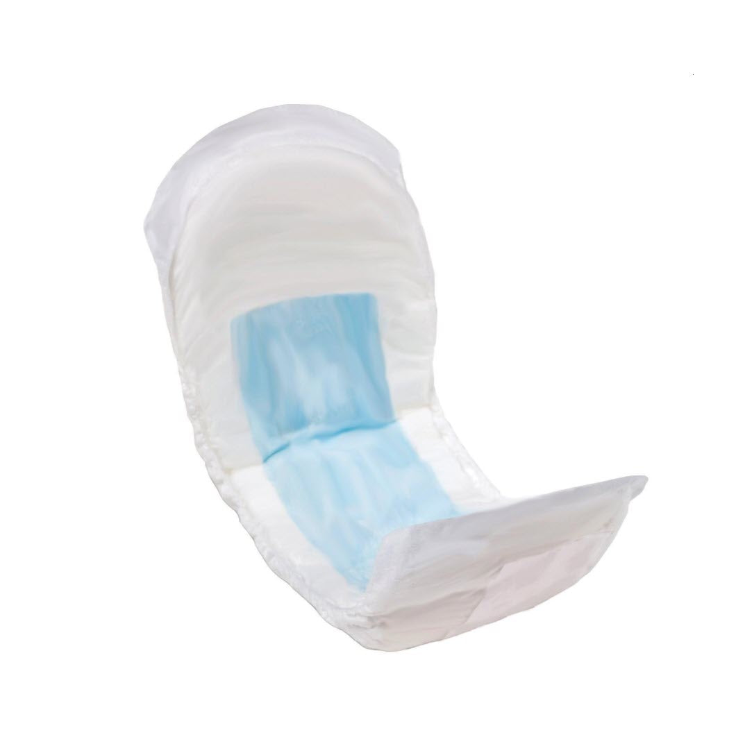 Bladder control pad with blue acquisition layer and super-absorbent polymers offers discreet protection, fluid retention and odor reduction for light incontinence